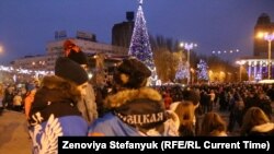 В Донецке открылись кафе, которые раньше пустовали. В витрине брендового магазина обуви "поселились" искусственные елки "в снегу", шарики и звездочки. Товары дорогие. Новогоднее дерево стоит от 18 тысяч рублей (300 долларов, что равно девяти минимальным донецким пенсиям). Шары – от 150 рублей (2,5 доллара). Но, несмотря на дороговизну, здесь покупателей больше, чем на рынке. В основном, это люди, которые вернулись в город только на праздник: "Мам, оставь свою машину, вместе поедем", – упрашивает женщину в шиншилловой шубе девушка с игрушками в руках.
