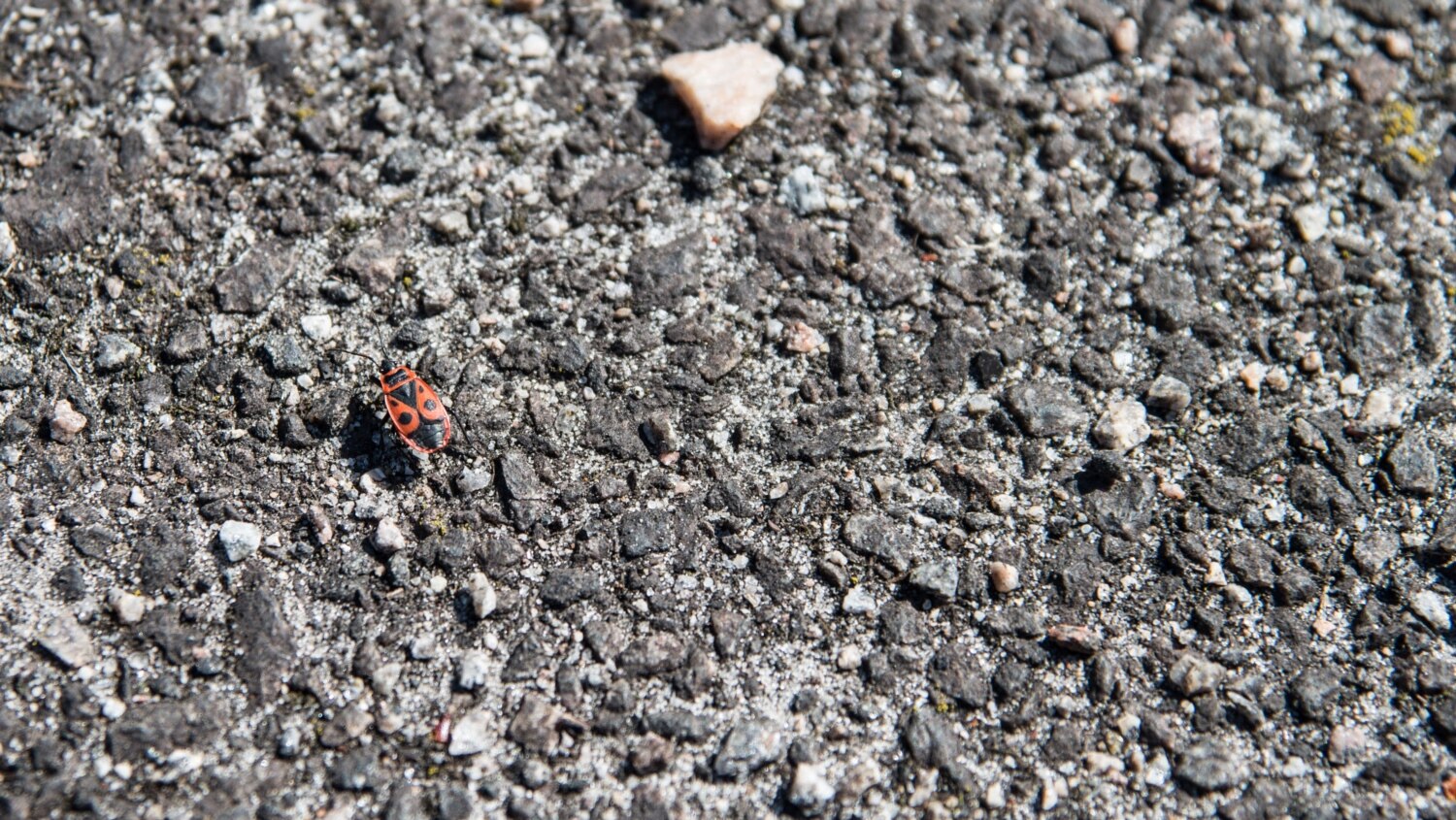 Жук-"пожарник" на асфальте заброшенного села в Чернобыльской зоне