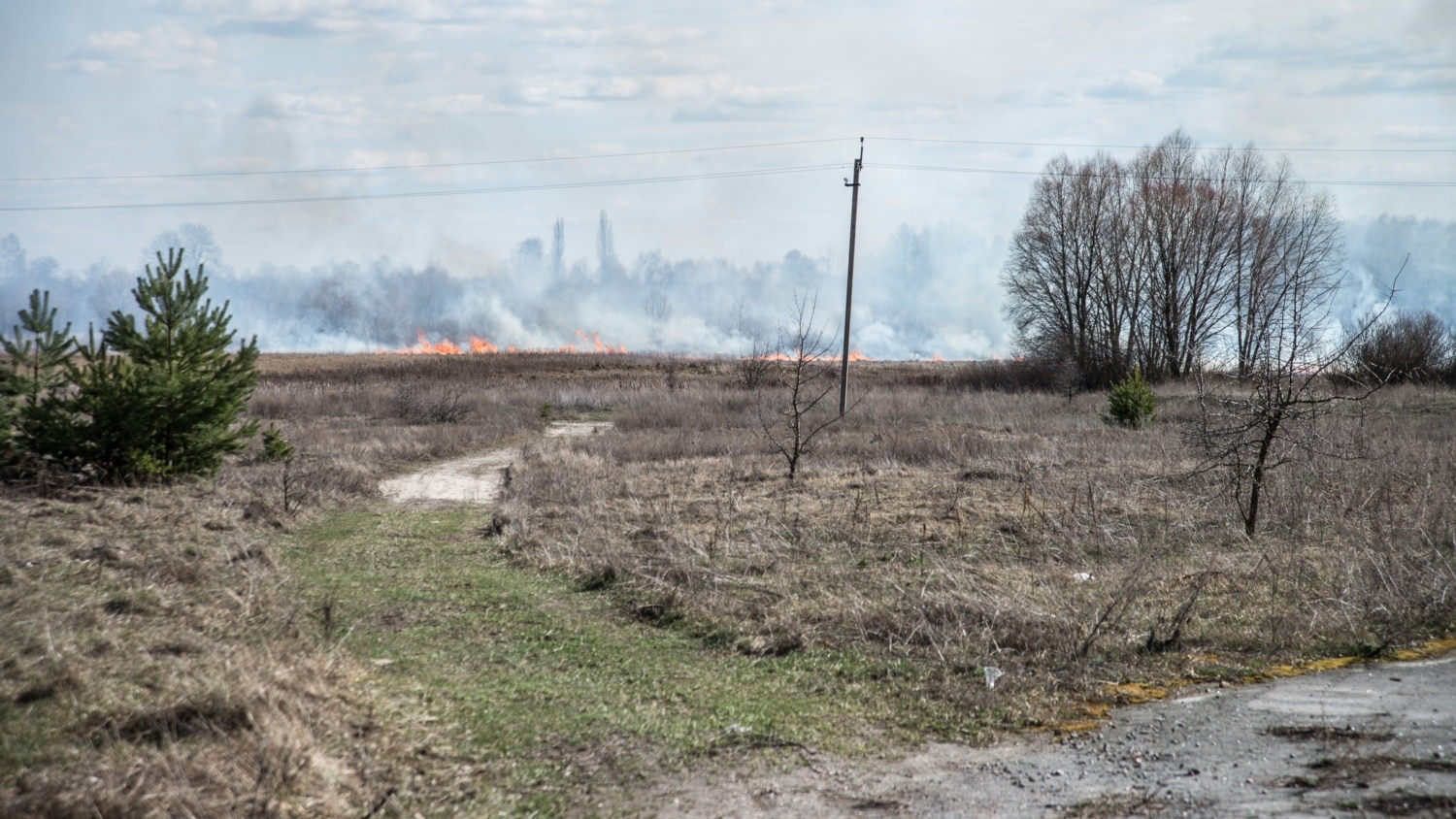 Но от огня зона и ее окрестности страдают больше, чем от радиации и вырубки. Пожары участились. Год назад съемочная группа стала свидетелем пожара в зоне отчуждения возле поселка Полесское: горели торфяники. 3 апреля 2016 году журналисты видели пожар возле села Дитятки: от огня до границы зоны было примерно 500 метров.
