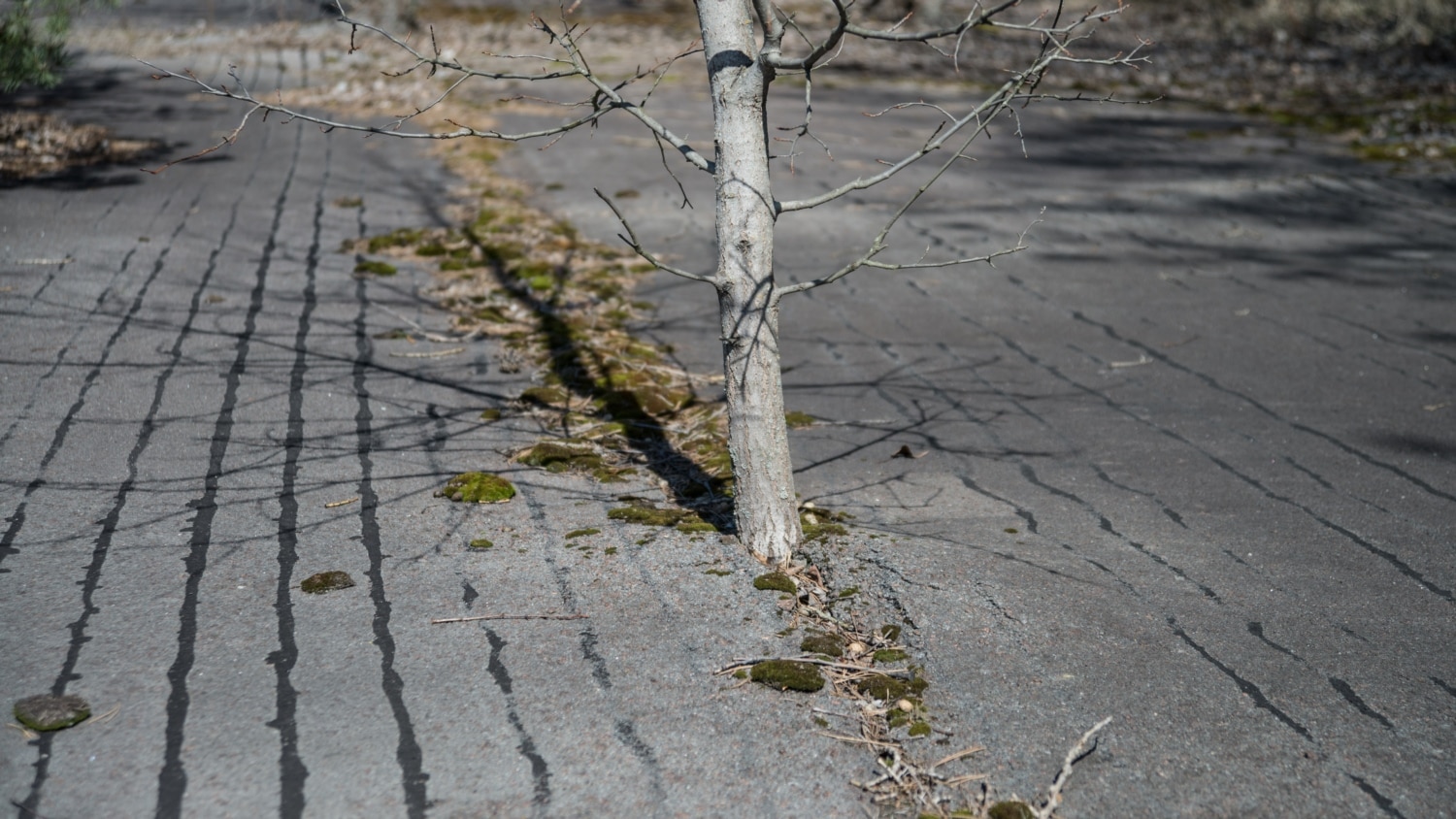 Дерево, выросшее на беговой дорожке заброшенного стадиона города Припять