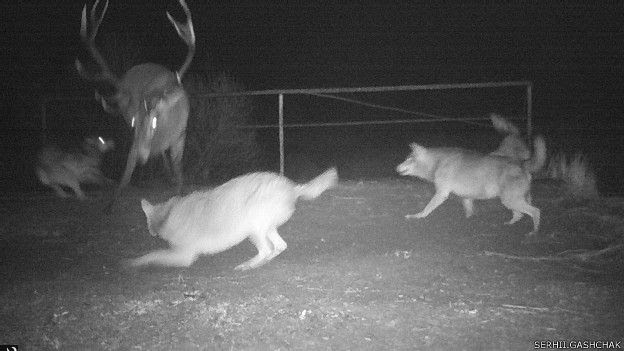 "Однажды, проходя через стадион выселенного города Припять, я встретил пару лосей. Они заметили меня и стали постепенно отдаляться. Часто на снегу и на влажных участках почвы я видел в зоне следы почти всего спектра животных, которые здесь живут. Из крупных млекопитающих – дикий кабан, олень, косуля, лось и волки – даже в Припяти. А также лиса, заяц, енотовидная собака", – рассказывает биолог. – "С появлением очень большого количества травоядных выросло и количество крупных хищников – волка и рыси. До аварии о том, что рысь встречается у Чернобыля, вспоминали лишь в некоторых научных текстах. После аварии ее количество стало сопоставимо с численностью волка. В начале 1990-х ученые-зоологи насчитывали 50-70 волков. Сейчас, по разным методам подсчетов, речь идет о 100-200 волков в зоне отчуждения и о стольких же особях рыси".