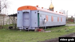 Так и не добившись от властей помощи в постройке церкви, священники расположились в списанном вагоне. Когда-то он перевозил медикаменты, а потом железная дорога подарила его церкви. Отец Михаил рассказывает, что железнодорожники сперва скептически отнеслись к идее и прислали в Черноморск комиссию: