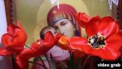 "Раньше эта икона была совсем тёмной, цветов видно не было, - рассказывает прихожанка Галина. - Я её принесла в церковь, а сама уехала к родителям в Винницу. Через месяц, когда приехала, подошла к иконе и спрашиваю: а что же вы с ней сделали? Она стала выглядеть совсем по-другому!"