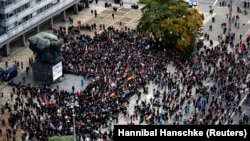 Более 1200 полицейских пытались сдержать столкновения и призвали митингующих разойтись. На улицы вывели шесть водометов.