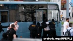 В Минске были задержаны журналисты белорусской службы Радио Свобода Александра Дынько и Андрей Рябчик, журналистка телеканала "Белсат" Ирина Араховская и ее оператор, корреспондент международного агентства Reuters, фотограф TUT.BY Вадим Замировский, корреспондент Onliner Анастасия Занько.
