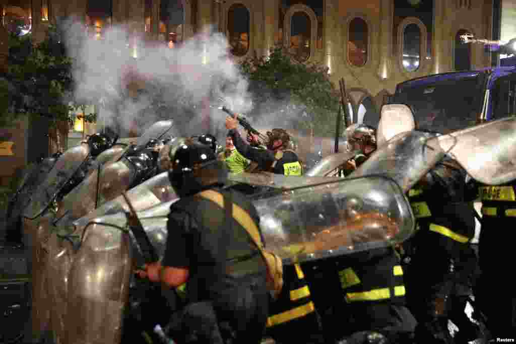 Собравшиеся требовали отставки председателя парламента и министра внутренних дел Грузии. Полиция несколько раз применила к протестующим слезоточивый газ, водометы и резиновые пули.
