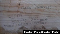 "На стыках бревен пишу, что "беглый русский плотник Сергей Филенко в 2024 году ремонтировал этот дом, я сбежал, потому что против войны. Путин – убийца и х***о, и не все русские уроды", – рассказал Филенко проекту Север.Реалии.
