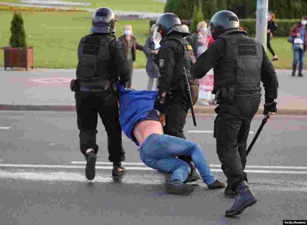 К вечеру, когда у стелы "Минск – город герой" собрались около пяти тысяч человек, силовики стали действовать крайне жестко: применялись водометы с оранжевой жидкостью вместо воды, дубинки, электрошокеры, слезоточивый газ. Есть раненые