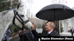 В конце встречи Жээнбеков подарил Путину орловского скакуна