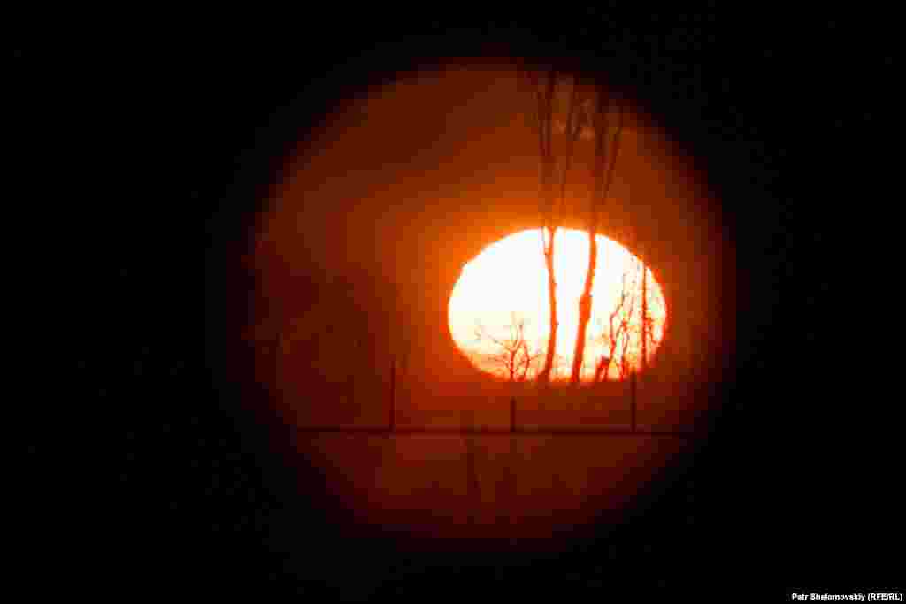 Украинский военный фотографирует закат