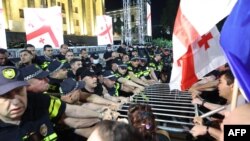 Акция приняла "насильственный характер", заявило позже МВД Грузии. На площади Свободы и у здания парламента были мобилизованы подразделения спецназа и водометы.